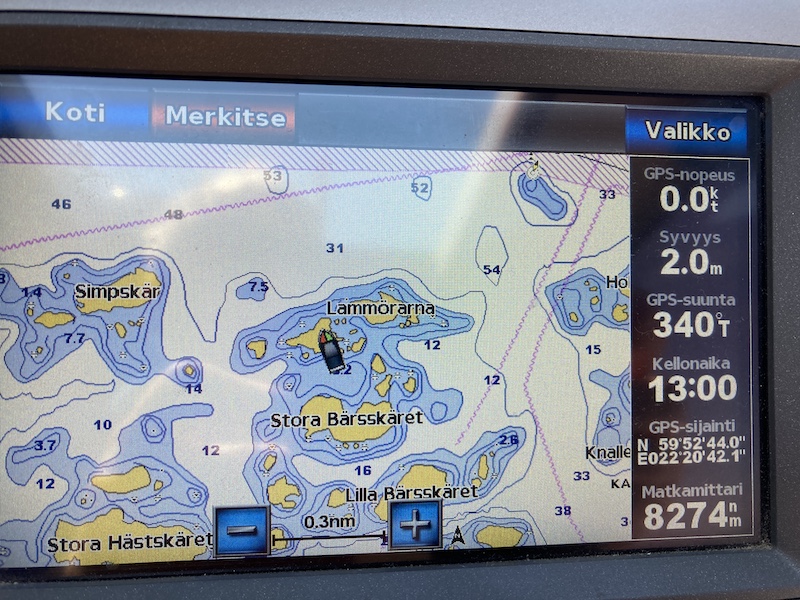 Suuntasimme väylän eteläpuolelle ja sieltä löydettiin Lammörarna saaret. Öröstä pohjoiseen 3-4 mailia.
