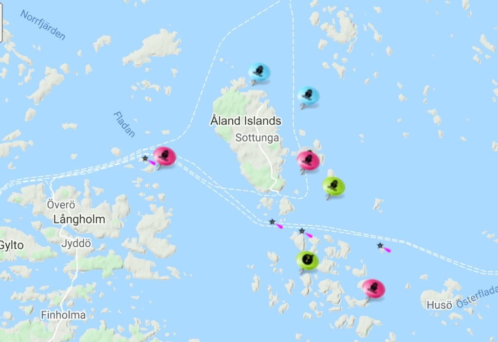 Satamaksi valittiin Sottunga. Ensinnäkin, se on saaren eteläpuolella ja tuulet tulevat pohjoisesta, joten saamme olla ”herrankukkarossa”. Toiseksi, siellä on hyväksi kehuttu pikku ravintola.