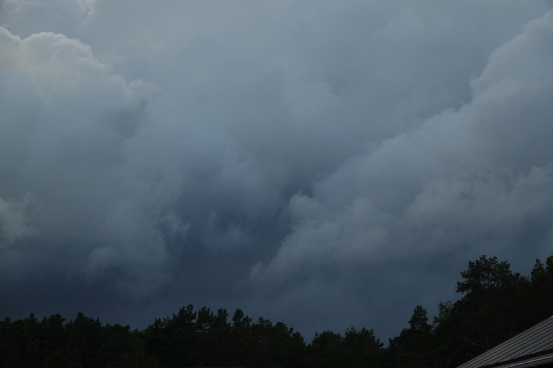 Luvattu sade ja kova tuulirintama alkoi lähestyä lännestä.