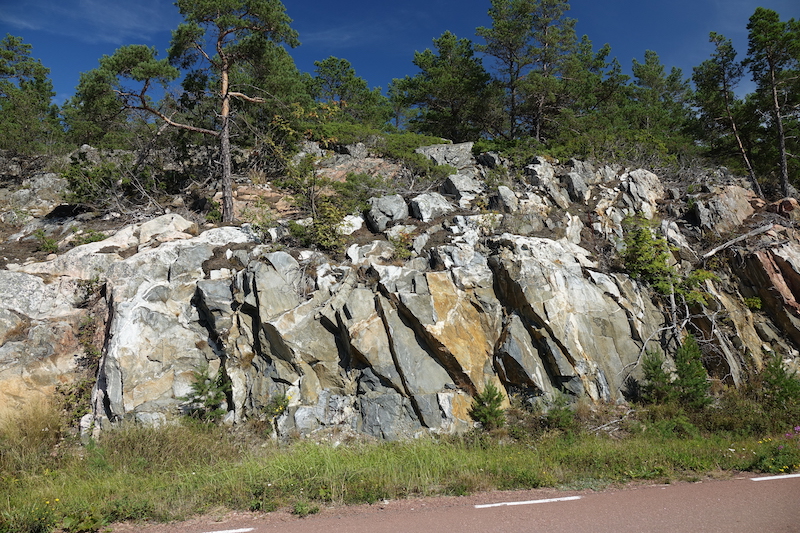 Matkalla ihan lähistöllä olevalle kirkolle, on tie reunassa aika erikoisennäköstä kalliota. Onkohan jotain luiskekiveä?