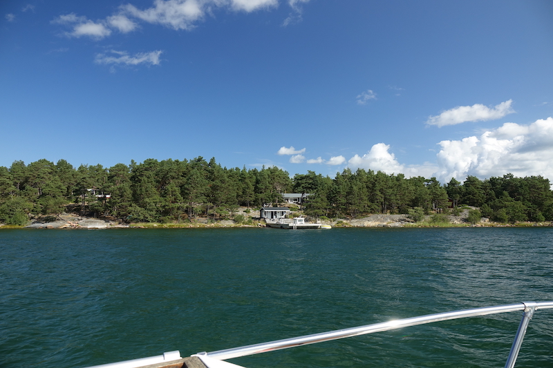Lähestyessämme Sottungan satamaa, oli muutama aika upea mökki, vai olisko jo huvila.