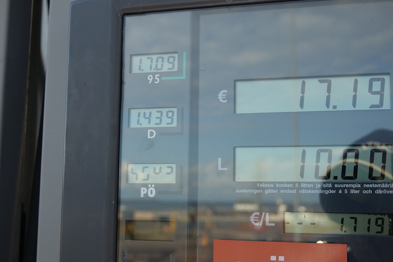 Maarianhaminassa maksettiin 31 senttia enempi litralta. Onneksi tankattiin vaan 150 litraa, joka sekin harmittaa nyt, joten pois lähtiessä otamma tankin täyteen.