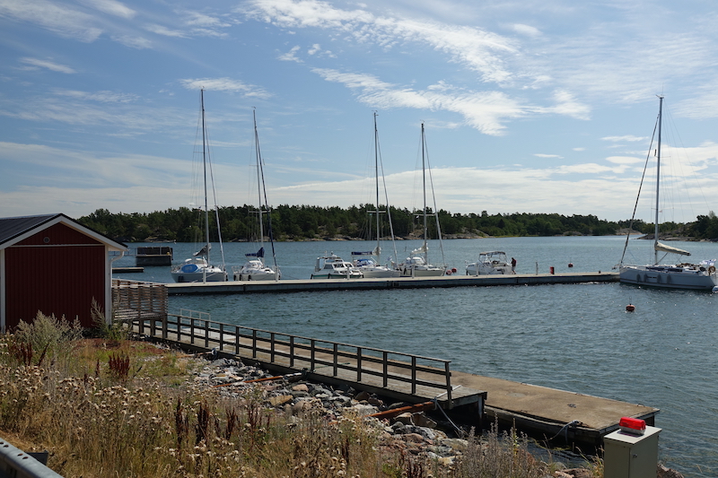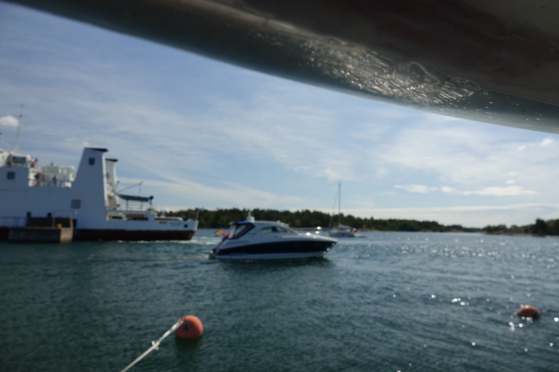 Eikä tosiaankan ollut meidän tullessä kuin tuo purkkari laiturissa. Vähän meidän jälkeen tuli tuo moottorivene. Ja kuten kuvasta näkee, laivaväylä menee aika läheltä, kiertäen kuitenkin tämän pikkusataman. Kilometrin verran on tuonne matkaa