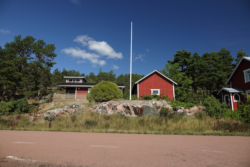 Satamaa vastapäätä on muutama hieno talo. Minä niin tykkään näistä puna-valko- maalaustavasta. Se vaan sopii tänne saaristoon.