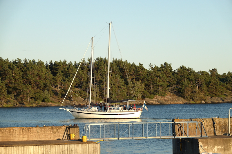 Idästä tuli vielä tuonne isolle laiturille purjevene. Kokoa varmaan liki parikymmentä metriä. Upea ilmestys.