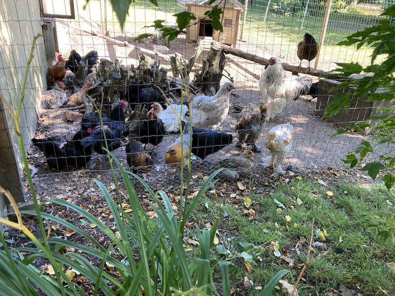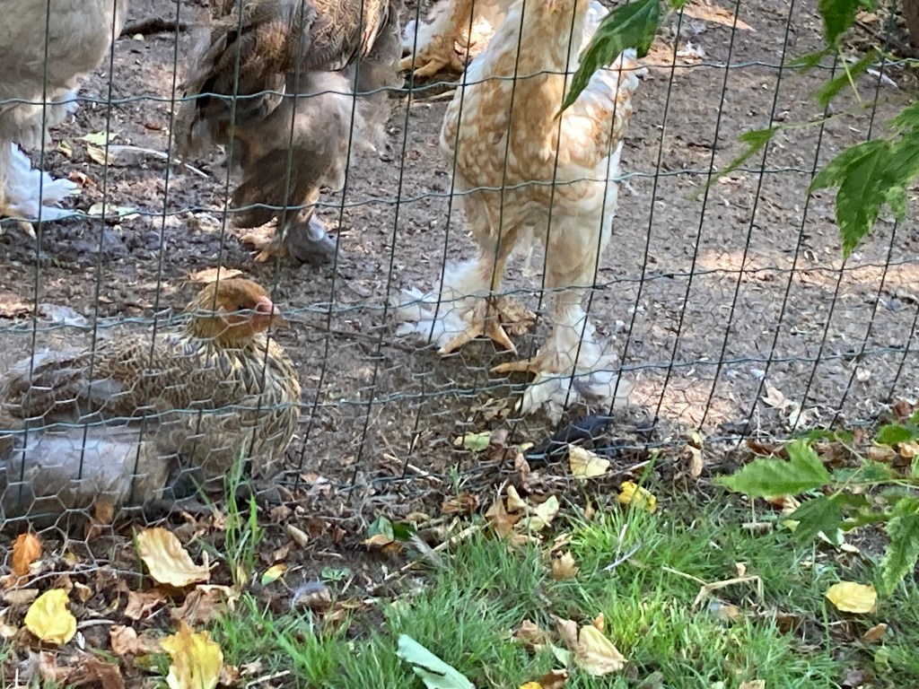 Kauppaa vastapäätä on Bed and Breakfast-talo, jonka pihapiirissä on tuollaisia karvajalkakanoja.