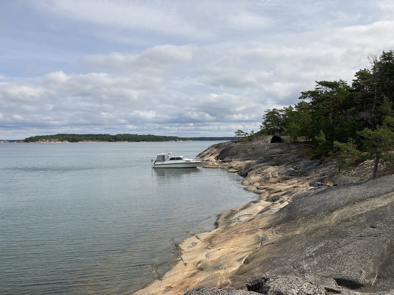 Tähän kohtaan saaresta voi isommallakin veneellä parkkeerata. Pitkillä köysillä/liinoilla puihin kiinni tai kalliokiiloilla.