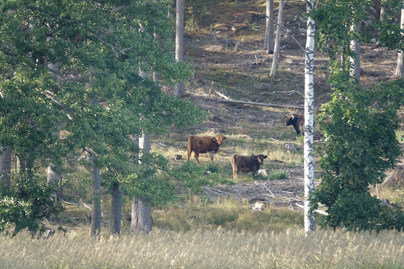 Lehmät metsikössä kääntyivät katsomaan rantautumistamme, joka kylläkin onnistui ilman kommervenkkejä, joten lähtivät ammut kaemmas, meidän katseiden ulottumattomiin.