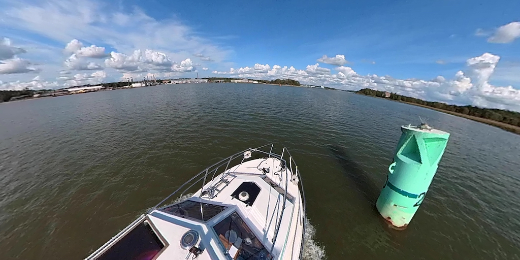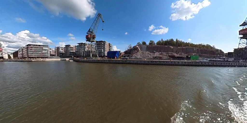 Tämän jälkeen tulee Pansion telakka-alue. Ruissalon itäpään kiertäminen ja sitten Silja Linen ja Viikinglinen terminaalit, ennen kuin pääsee kääntymään Aurajoelle.