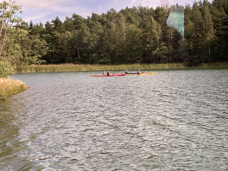 Jossain vaiheessa ilmestyi muutama kanootti tuolta niemen takaa. Eivät jääneet tänne, vaan jatkoivat matkaansa.