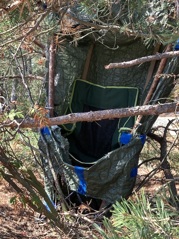 Joku on itselleen ja tuolilleen tehnyt pressusta suojan ja jättänyt sen sitten tänne. Tämän fokusta en kyllä hahmota, mutta eipä kai tarvikaan.