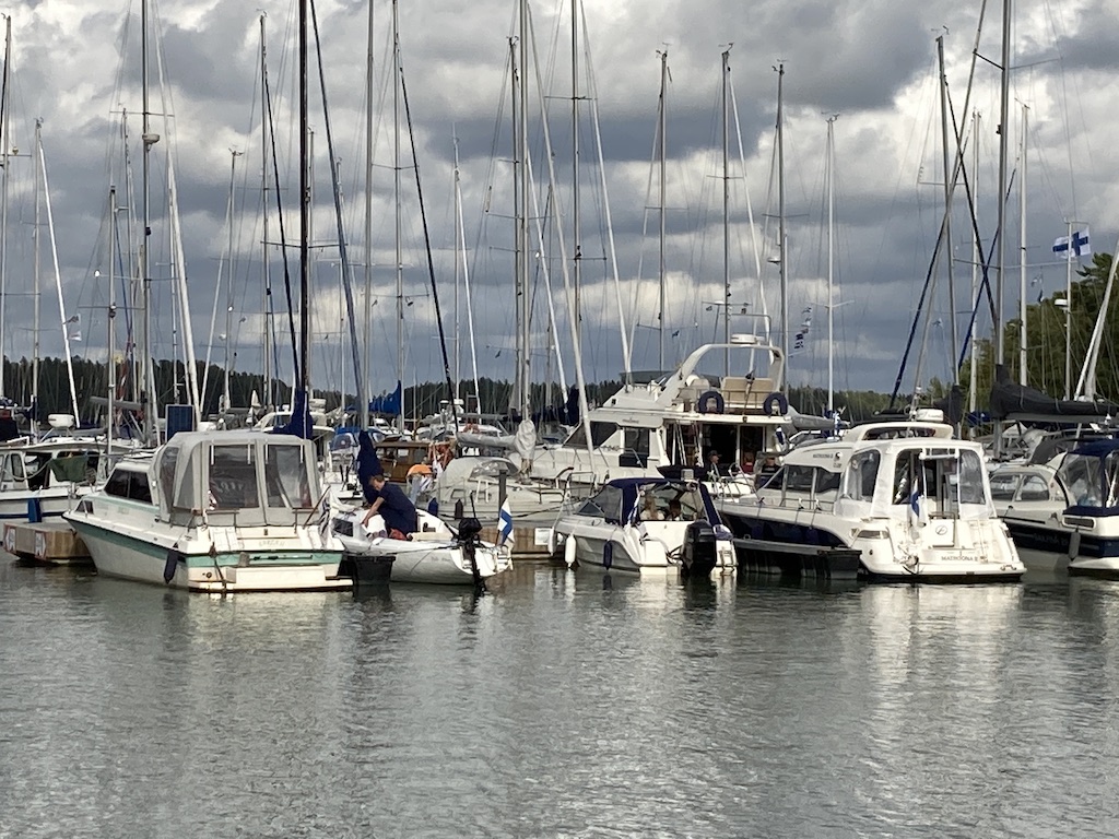 Aamupäivällä veneitä lähti, vaikka välillä tuli vettä kuin …. Varsinkin purjeveneilijöitä pikkaisen jopa säälitti. Sadevaatteet päällä, se on veneilyä, se.