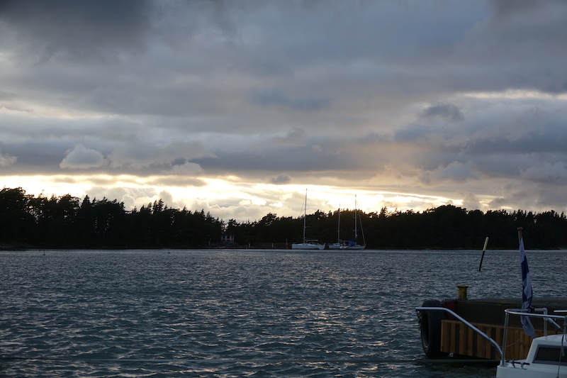 Meinattiin lähteä pienelle lenkille, mutta sateen uhka oli ilmassa hyvin voimakkaana, joten jäädään odottelemaan huomista päivää, josko olisi poutaa. Tuo sadepilvi tulikin melkeimpä saman tien päällemme, kun ehdittiin takaisin veneeseen.