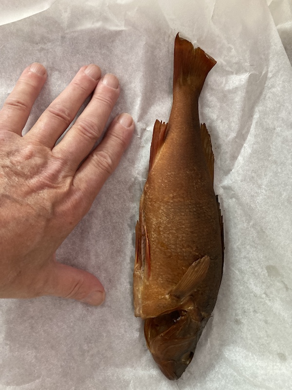 Kun pääsimme veneelle takaisin alkoi tihkusade. Jouduin odottelemaan jonkin aikaa ennen kuin uskaltauduin ulos ja maksamaan varaamamme saunavuoron ja samalla ostin yhden ison savustetun ahvenen iltapalaksi.