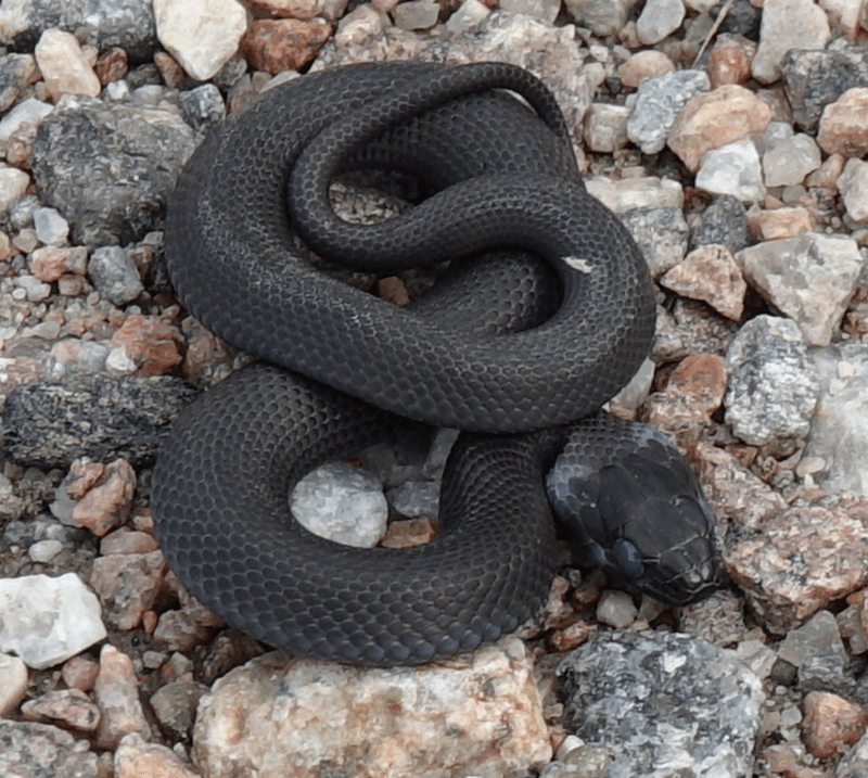 Tutkailin asiaa, ja toden totta, on olemassa mustia rantakäärmeitä. Pään suomut suurentaessa auttoi tunnistuksessa. Ja ilmeisesti nahanluonti on menossa, siksi kai oli niin vihainen.