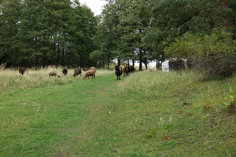 Hyvin ne sitten väistyivät sivummalle, kun lähemmäksi menimme. Yksi oli jäänyt tuonne oikealle pusikkoon ja riensi lajitovereidensa luokse pikkaisen meitä säikäyttäen. Nämä kun saattavat tulla persuksia pukkimaan, kun tuolla lailla takaa päin tulevat. Joutui töppöstä toisen eteen laittamaan rivakammin. Sillä siitä selvittiin.