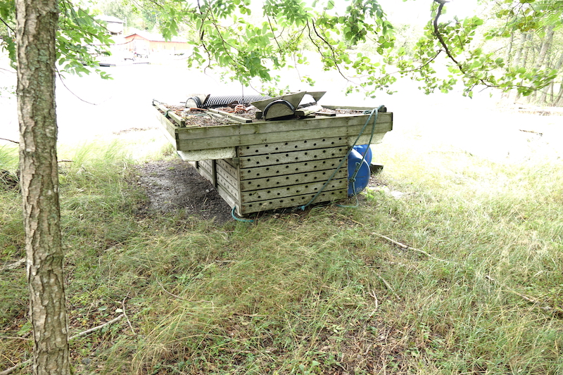 Alhaalle päästyämme kalliot jäivät oikealle puolellemme ja lahden pohjukka vasemmalle, niittymäinen maasto alkamassa, oli rannalle vedetty reilun kokoinen sumppu. Olisko ollut 1,5 x 3 metriä. En muista noin isoa puista sumppua ennen nähneeni.