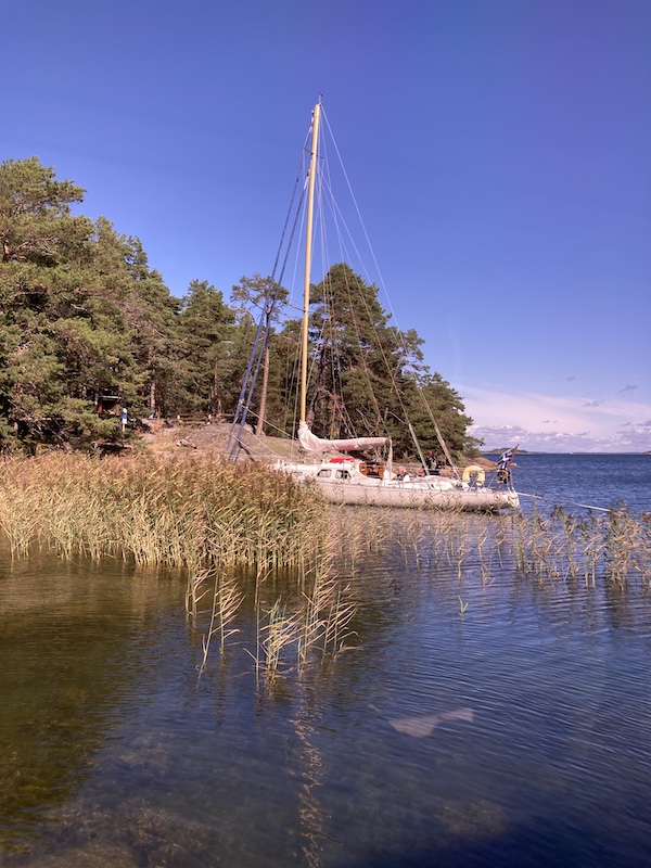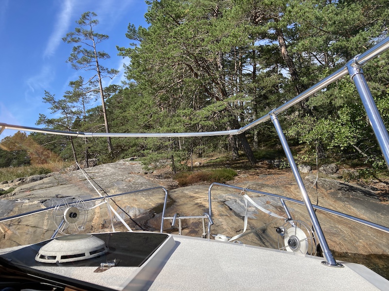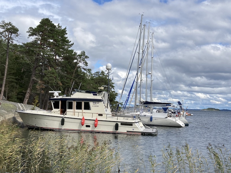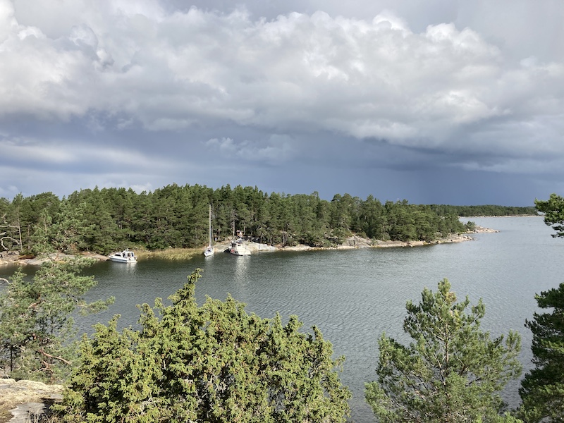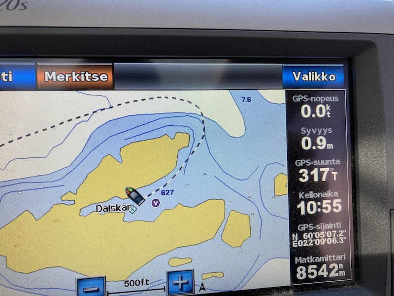 Saari valikoitui paristakin syystä. Emme ole täällä käyneet ja tuulen suunta. Tämä on suojainen tällä tuulella ja ennakkoon tutkittuani, rantautumis/kiinnityspaikkoja runsaasti.