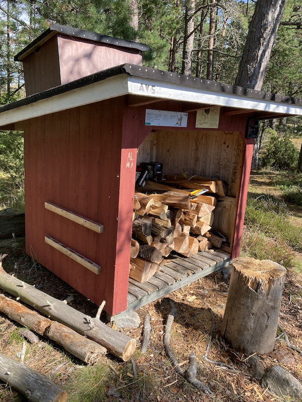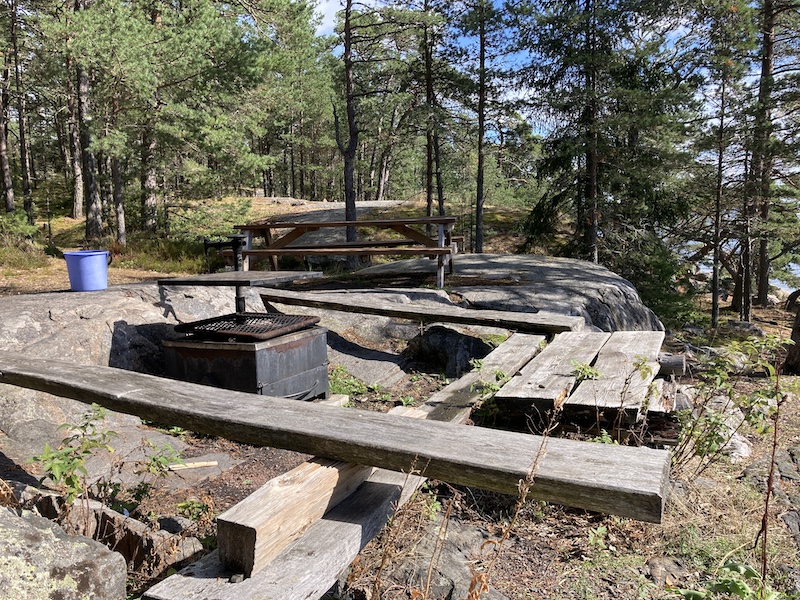 Veneemme oikealla puolella on nuotiopaikka puineen sekä puuceekin löytyy, josko ei satu veneessä olemaan vessaa..