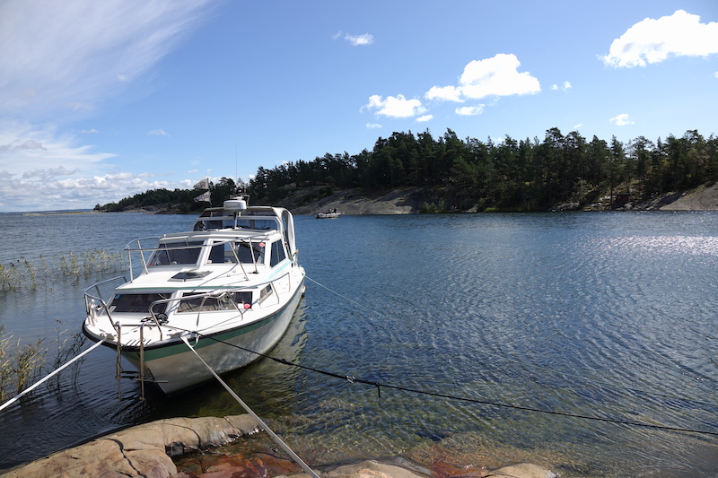 Ankkurin lisäksi keula kolmesta kohtaa ja vielä perästä springi maihin, pysyyköhän nyt!