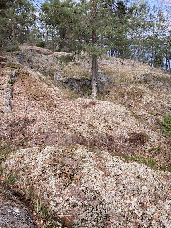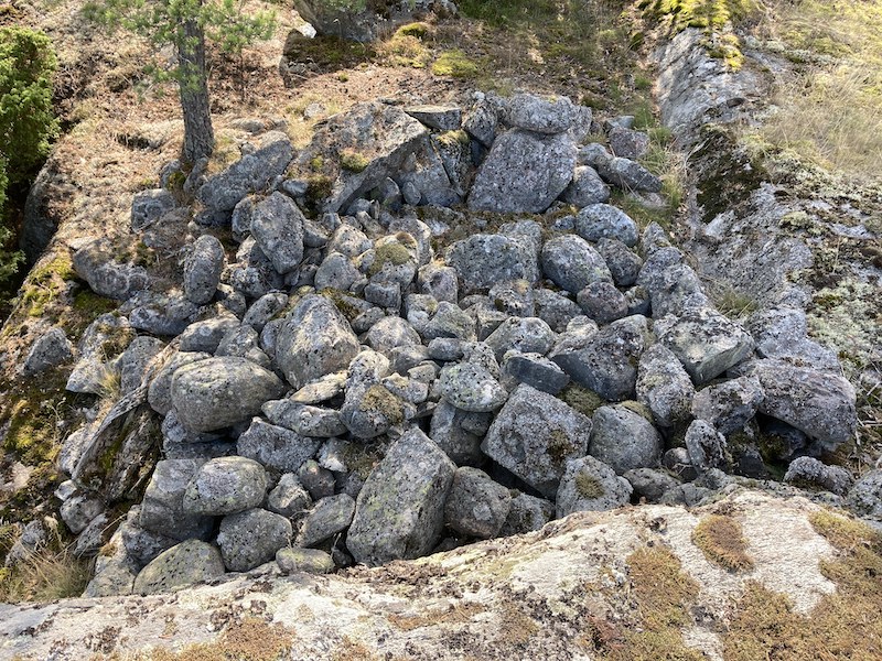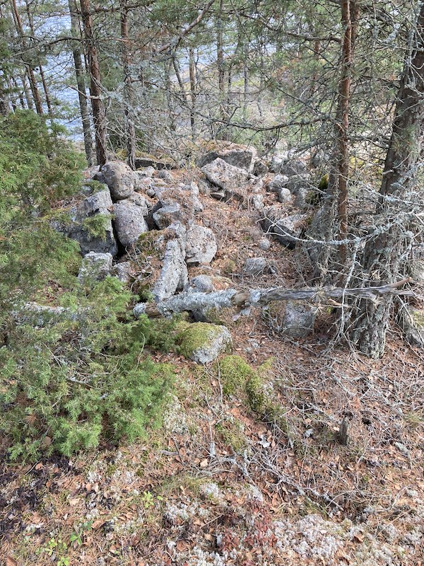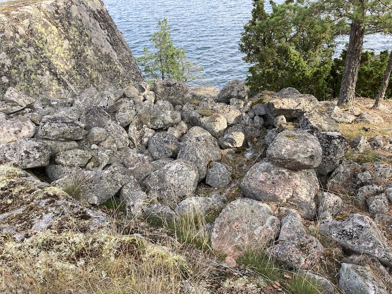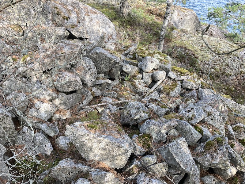 Maasto on osittain aika helppokulkuista, joten lähiympäristöä kulkiessani, törmäsin saman tyyppisiin kivikasoihin, kuin aivan rannan tuntumassa veneemme vieressä on.