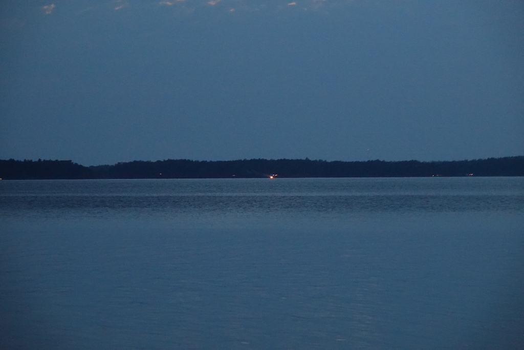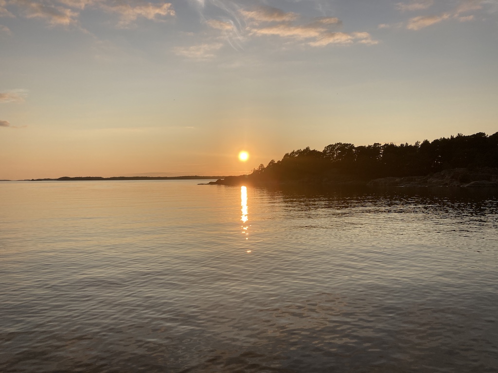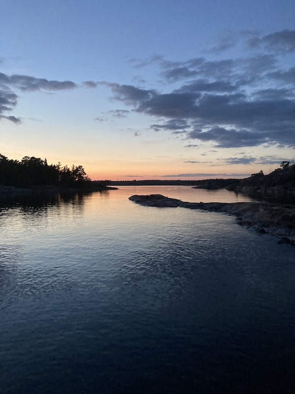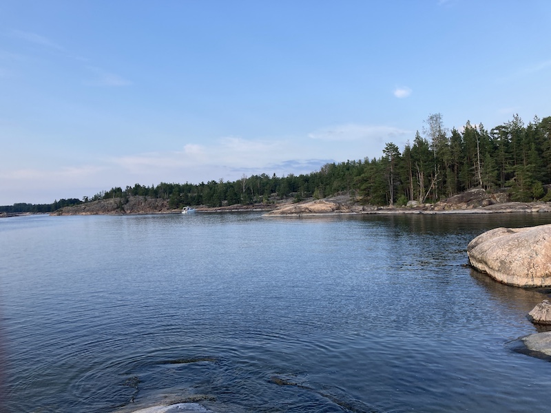 Alkuillasta tuli vene, joka suuntasin määrätietoisesti tuonne lahden pohjaan ja kun eivät poiskaan tulleet, oletan heidän jäävän yöksi sinne. Sen verran tuo kalliouloke suojaa, ettei näköyhteyttä ole. Suurin piirtein samoille paikoille, missä ne kanoottireissaajat olivat.