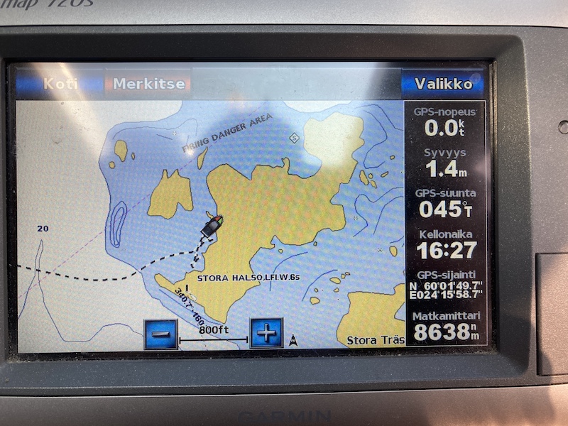 Jääkaapin täyttöä kaupasta ja sai mahatkin täyttöä paikallisessa ravintolassa. Sitten köydet irti ja kohti Stora Halsötä. Nyt olikin jo melkein ruuhkaksi asti liikennettä.