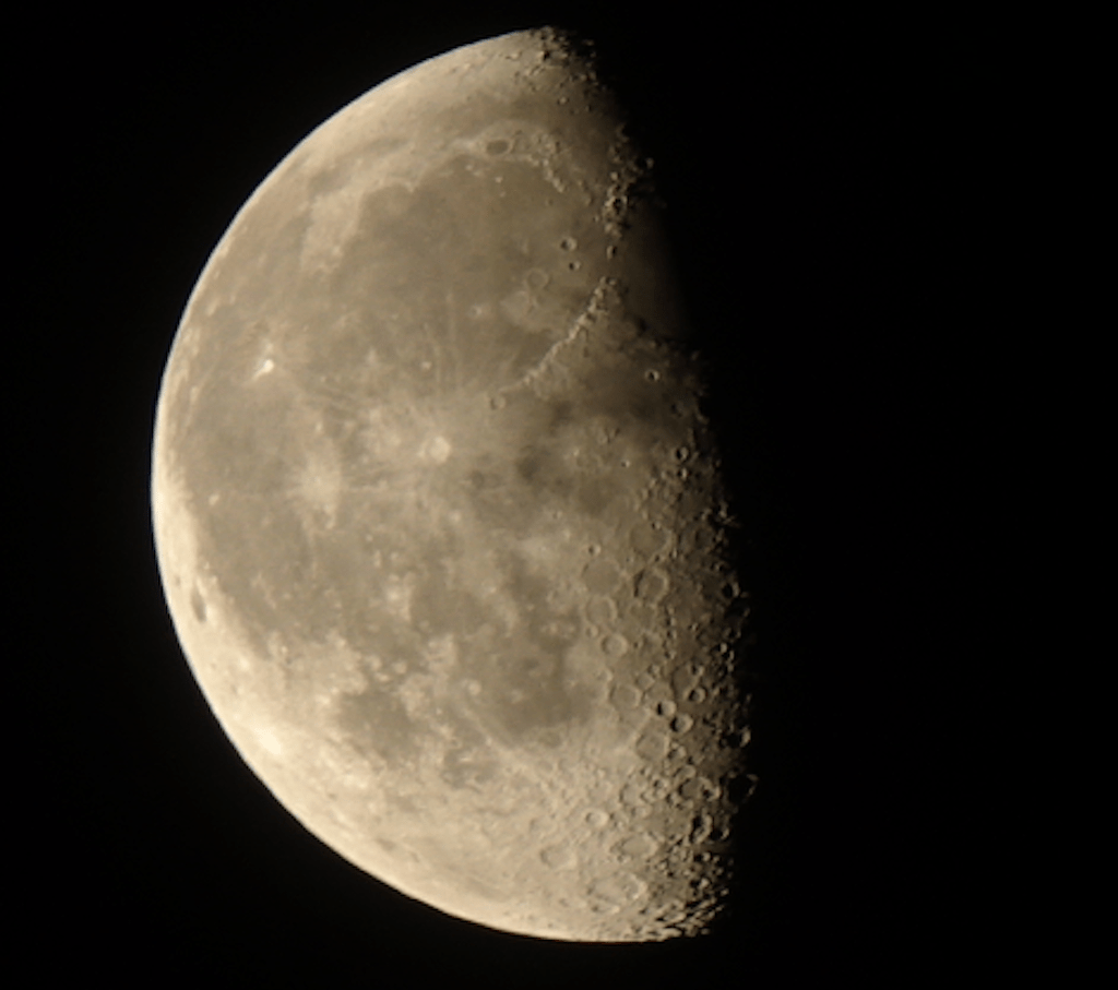 Jostain syystä heräsin kahden maissa ja näin taivaalla puolikkaan. Olihan se pakko ikuistaa, kun täällä ei ole häiritsevää taustavaloa.