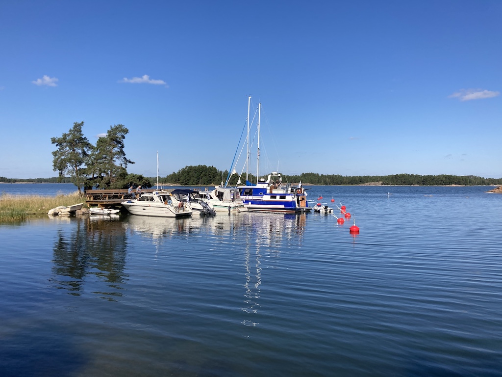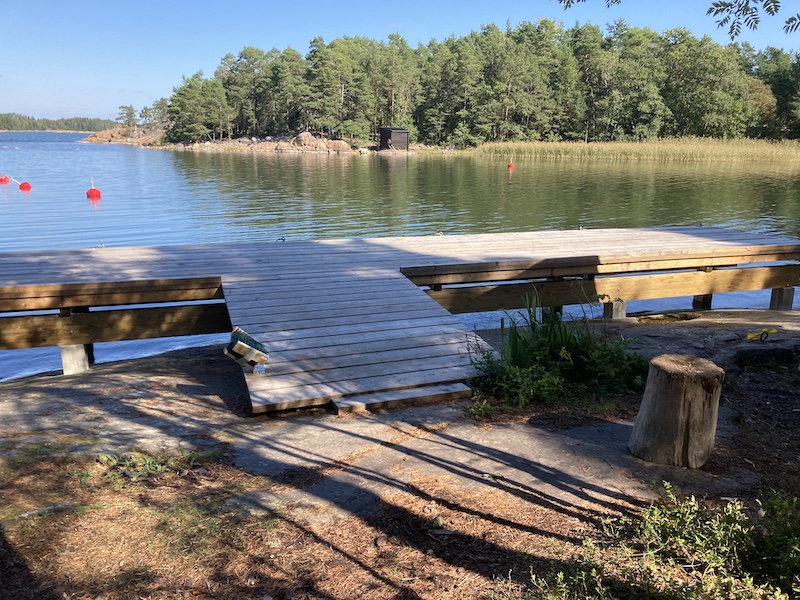 Sitten viime käynnin, täällä on tehty paljon parannuksia. Laituri perustuksiaan myöden uusittu. Täytyy myöntää, että se vanha alkoikin olla aika huonossa kunnossa. samoin kaikki poijut uusia, joten ei tarvitse pelätä niiden pettämistä. Tosin, ei tähän käy kuin pohjoistuuli, ja sekäään ei isoa aaltoa ennätä kehittää, kun vastakkaiset saaret ovat edessä.