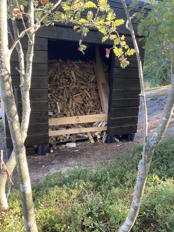 Puuliitereitä on kaksin kappalein. Toinen tässä uuden laiturin edessä ja toinen saunan edessä. Saunalla oli kyllä ennestäänkin hyvä liiteri, mutta tämä nykyinen on aivan veden äärellä, joten uusien puiden latominen liiteriin on helpompi lyhyemmän matkan ansiosta.