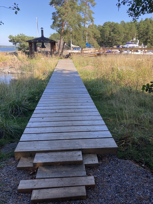 Grillikatokselta oli tehty uusi silta varsinaisen saaren puolelle, joten nyt ei tarvitse kenkiään kastella, kun ennen tuossa ei ollut mitään muuta kuin kivikkoa ja heinikkoa. Varsinkin jos vesi oli korkealla, piti olla kumisaappaat jalassa, jos mieli saunalle mennä.