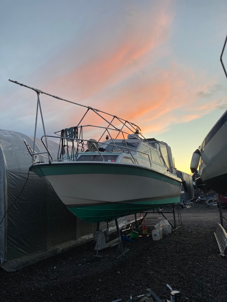 Sain kuin sainkin homman tehtyä keskiviikkona, 3.11. ja uskalsin tilata noston. Sen sain vasta seuraavalle tiistaille, mutta jo tuolloin tiesin olevan mahdollista pakkasöihin. Se taas ei ole hyvä juttu, jos moottoriin ei ole ajettu merivesipuolelle glygooleja. Vesi kun jäätyy, se voi rikkoa paikkoja jäähdytysjärjestelmässä.