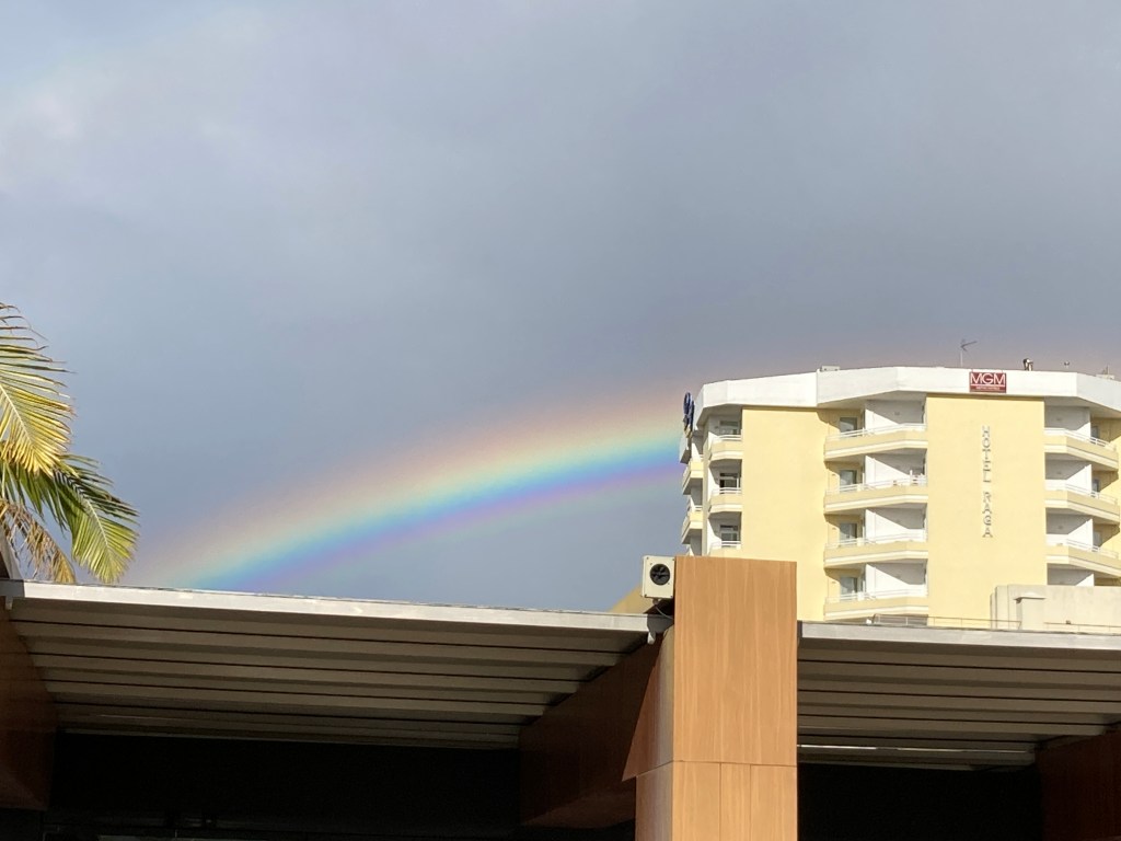 Juuri ennen lähtöä, alkoi kevyesti ripsimään, joka sai sateen kaaren loistamaan.