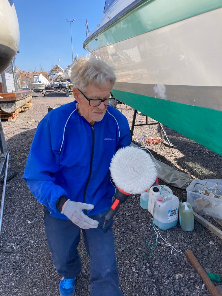 Kaiken tämän askareen välissä, kun sää sen salli, alkoi myös kylkien ehostus. Siinä sain avukseni Masin, joka hyvin ansiokkaasti käytti kiilloituskonetta ja lopputuloksen näkee kuvasta.