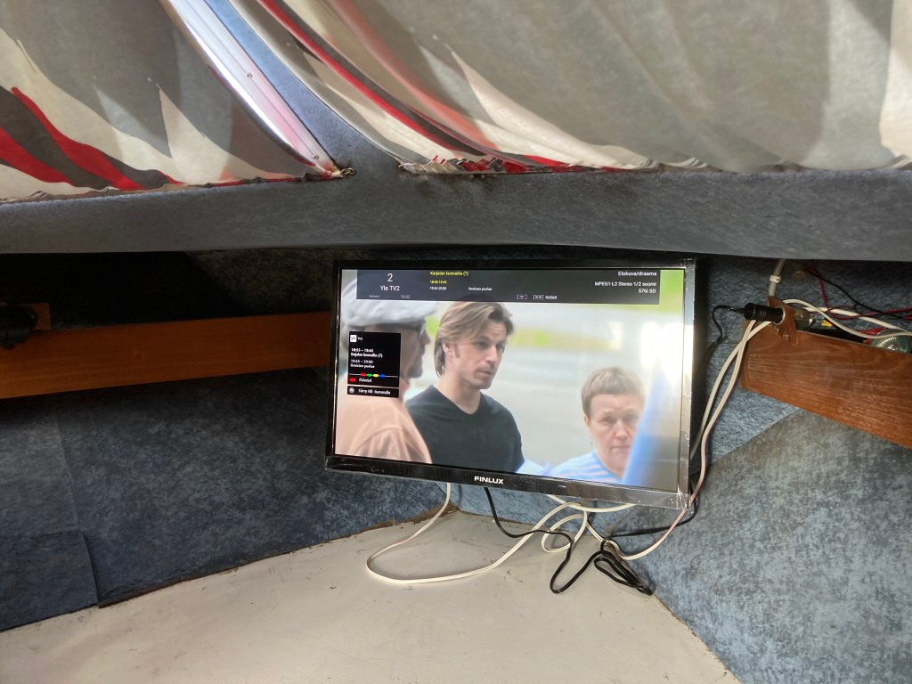 Sitten olikin hifistelyn vuoro, eli asensin uuden telkkarin. Vanhan sain myytyä heti. Nyt on sitten ”äly-tv” eli on netti ja kaikki …. näkyy Areenat ja Katsomot, jos ei ole ”oikeeseen” aikaan paikalla katsomassa. Ai niin, eipä saaristossa joka paikassa telkkari näykään eikä toimi välttämättä nettikään. Siksi tämä ominaisuuksien parannus, eli kun sitten näkyy, voi katsoa ne ohjelmat, mistä jäi paitsi.