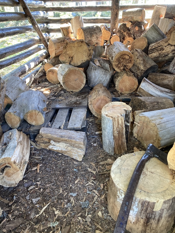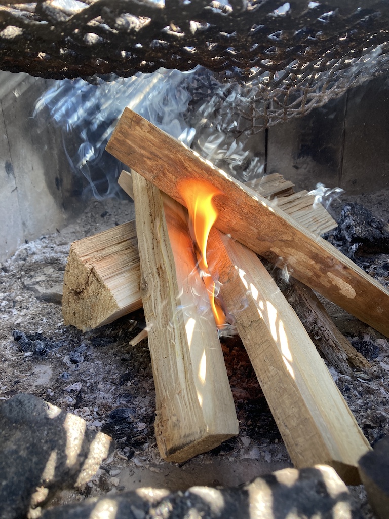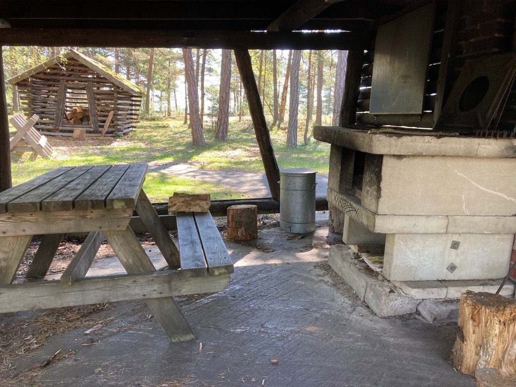 Keli oli kohillaan, lämpöä riitti, joten päätettiin tehdä tulet ja syödä ulkona. Vaikka saaressa onkin puita, on meillä omiakin, ne kun on jo valmiiksi pilkottuja. Tämän saaren puuvajassa on vain pölkkyjä ja minun selällä ja käsillä niitä ei pysty pilkkomaan.