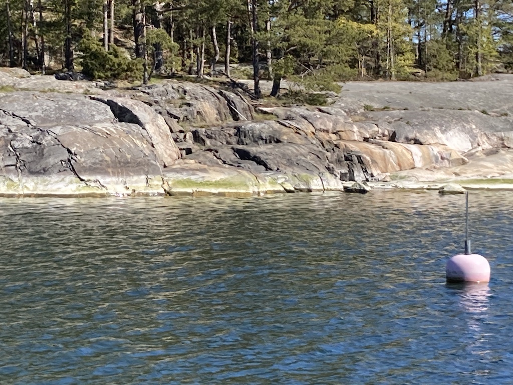 Tarkoitus oli mennä Stora Mickelskärin Bylandettiin, mutta kuten viime vuonnakin kävi, vesi on matalalla ja rannassa liikaa levää meille. Ei tän ikäinen voi ottaa riskiä joutumisesta veneen ja kallion väliin.