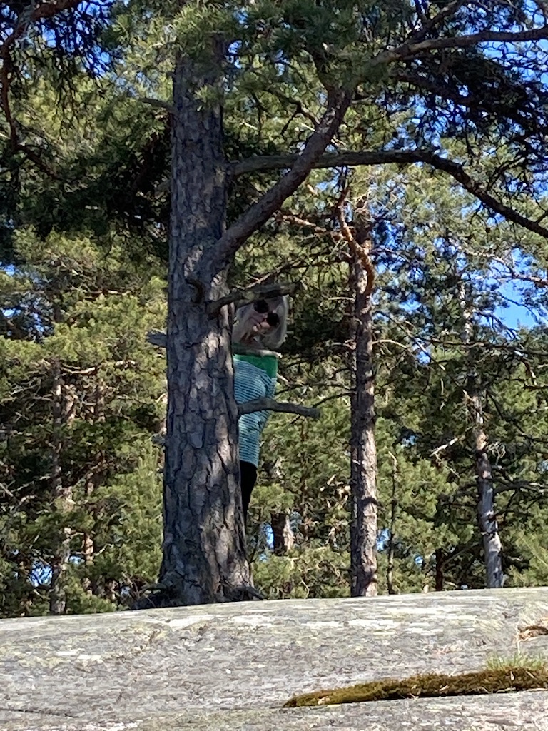 Sinällään hyvä, että on edes puita saaressa, aina ei näin ole ollut. Tämähän kuuluu Lähteelään ja sen ”huoltopiiriin”, joten tämän suhteen asiat ovat nyt paremmin. Itse asiassa Mikko, Lähteelän Pomo, tulikin moikkaamaan meitä. Ollaan tunnettu toisemme jo parikymmentä vuotta. Oli kiva tavata pitkästä aikaa ja höpötellä kuulumisia. Ovat kuulemma palkanneet monta paikallista nuorta töihin kesäksi, joten pääsevät fillarilla töihin ja tänne saareen sitten firman veneellä. Samalla on lisääntynyt Lähteelän ruokatarjonta. Nyt tulevana kautena saa muutakin kuin lohosoppaa, joka olikin hyvää. On lihapullia ja kolmea lajia salaateja. Saa kokki veneessä vapaapäiviä, hyvä niin.