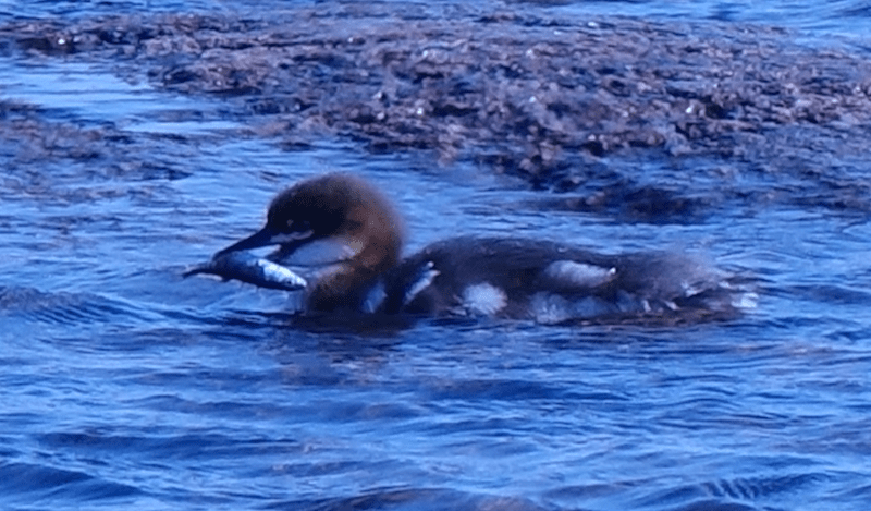 Oli pienimmilläkin vesilinnuilla ohjelmaa. Tukkasotkan poikaset olivat kovia kalastajia.