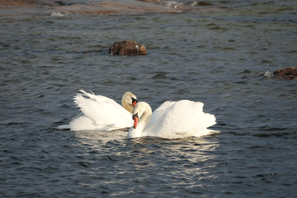 Nuori Joutsen pari ei nyt kerennyt edes sukimaan, kun harjoittelivat tulevia häätanssejaan.