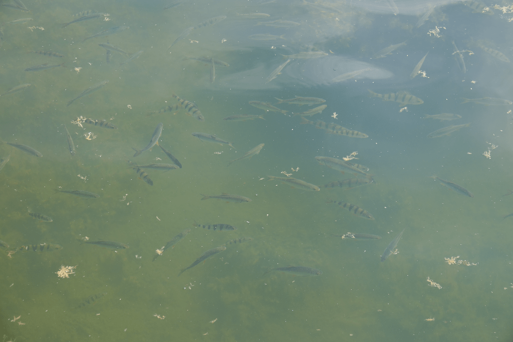 Sitähän en tiedä, kuinka monta yritystä vaatii saada edes yksi pikkukala kiinni, mutta jotenkin vaikutti, että koko ajan oli jollain suu täysi syötävää.