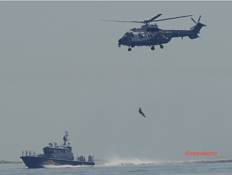 Ihmettelin välillä pörinää ulkomeren puolella, kunnes kävin kurkkamassa ja onnekseni, kamera mukana. Siellä oli harjoitukset menossa. Laskivat kopterista liikkuvaan veneeseen miehen ja kyllä, onnistui se. Jatkoivat näitä treenejä tosi pitkään, eli, aika kauan saa tuommoinen kopteri ilmassa hääriä tankkaamatta.