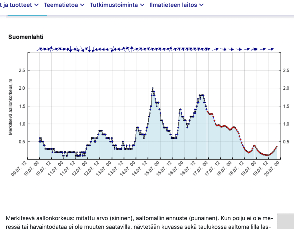 Torstain ja perjantain välisenä yönä oli ollut kova tuuli, jolloin oli ollut jopa parimetrisiä aaltoja Helsingin edustan mittauspisteessä.