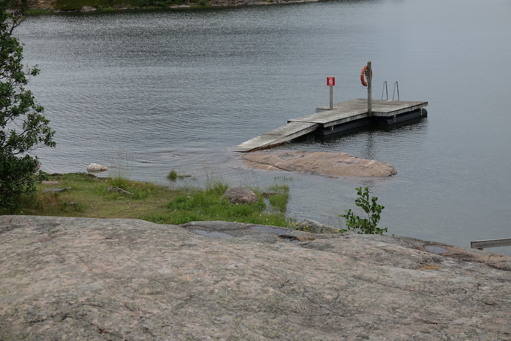 Vesi on aika korkealla, joten tuonne uimalaiturille ei enää kuivin jaloin pääse. Toisaalta, kastuvathan ne kumminkin, jos kerran uimaan on menossa 😉