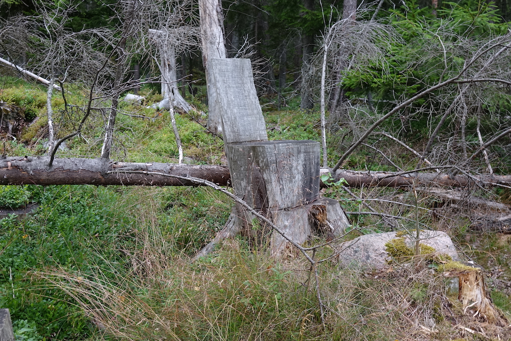 Joskus kun täällä on tehty metsätöitä, on metsuri tehnyt penkin joko itselleen tai sitten meille turisteille.