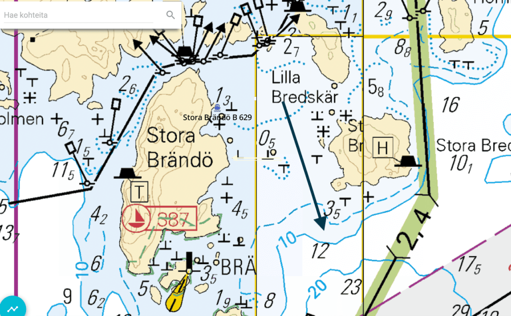Ja tuolta sisäväylältä en nyt muista syväyksiä, mutta tännehän voi tulla oikaisten tuolta ulommalta väylältä ihan hyvin.