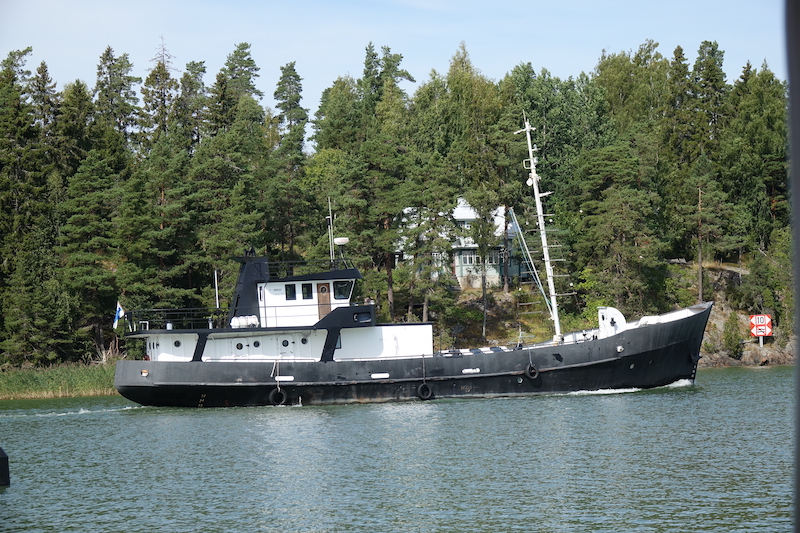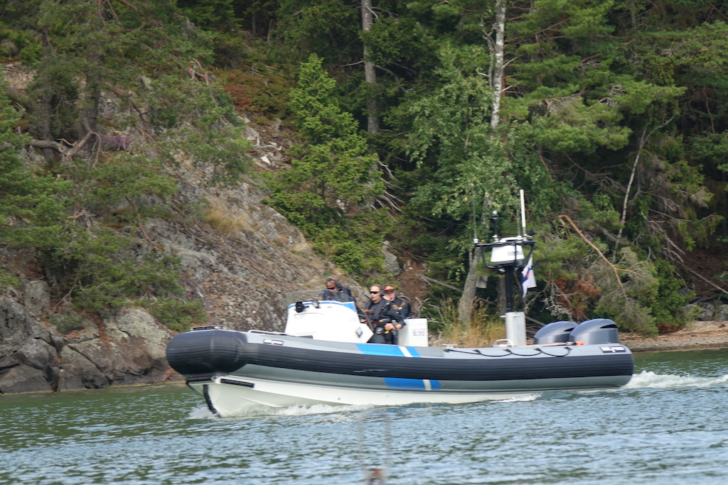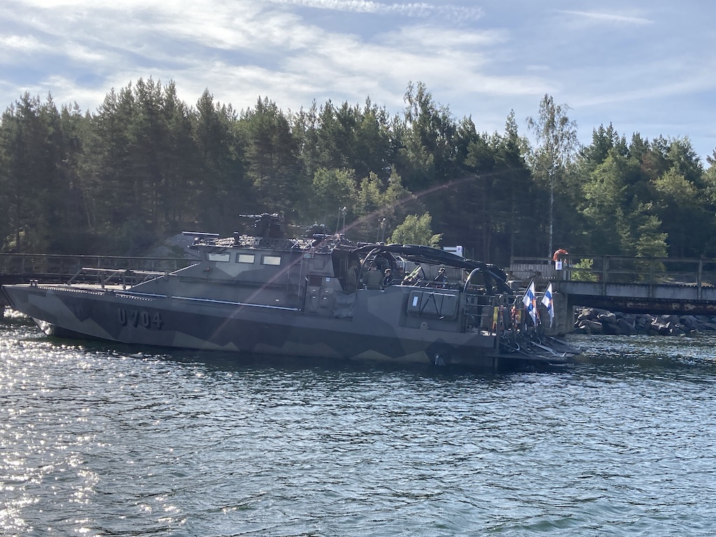 Juuri kun tehtiin lähtöä, heti kymmenen jälkeen, tuli Hangon suunnalta pari puolustusvoimien venettä.