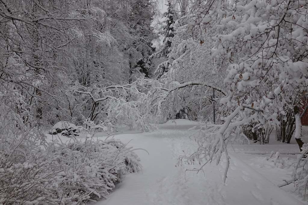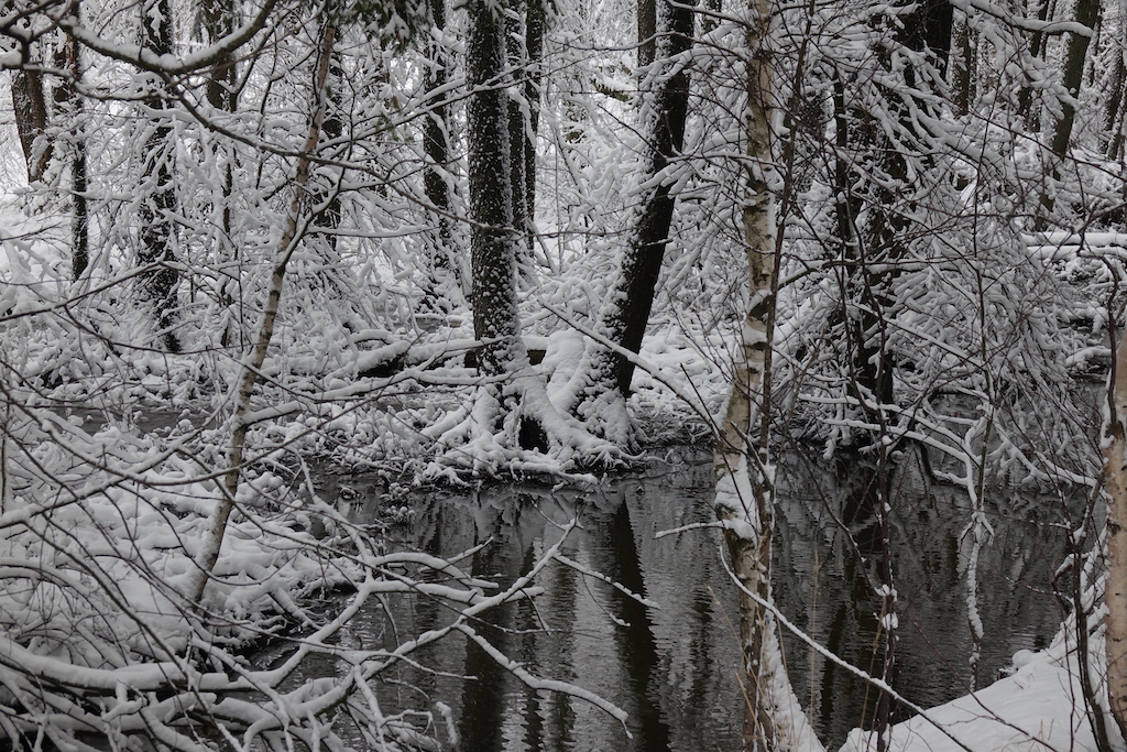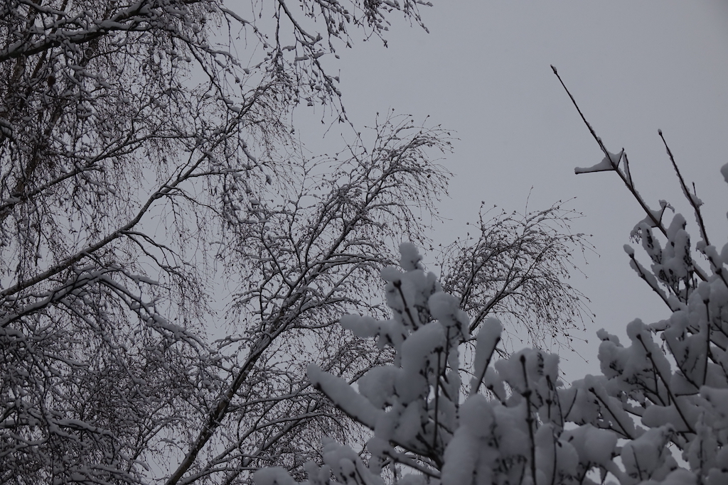 Kävin muutaman otoksen ottamassa, kun yöllä oli pikkasen satanut lunta, eikä tuuli ollut vielä kerennyt ravistella oksia puhtaiksi.