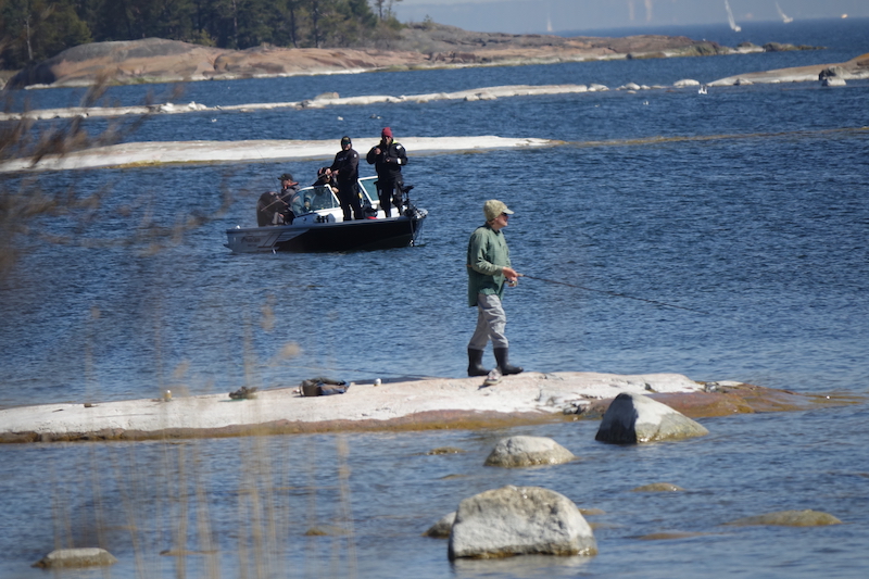 Kalastajia, siis muitakin kuin Kari, pyöri joka päivä veneineen. Paikka on kuulemma hyvä taimenpaikka. En tosi itse nähnyt, mutta Kari näki jonkun nostavan veeseensä kalan, joten kauppa täällä sitten noita jalokaloja pyörii.