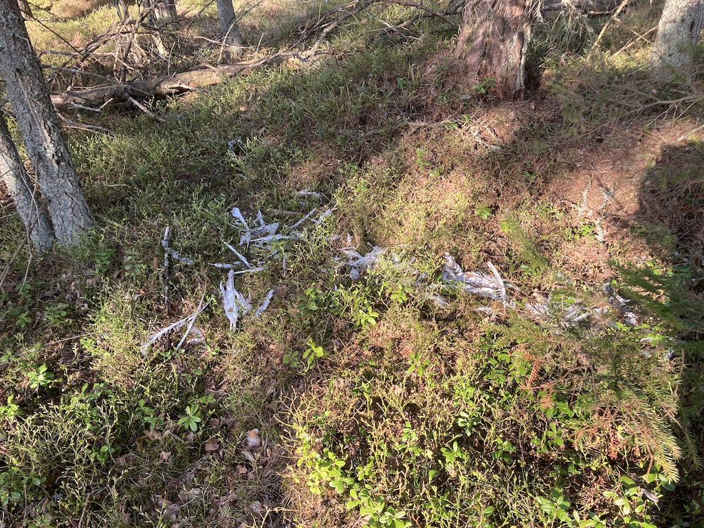 Luonto on raaka ja tässäpä esimerkki, vain sulat jäljellä. Ja taidettiin ”syylinen” nähdäkin tänään, lauantaina.
